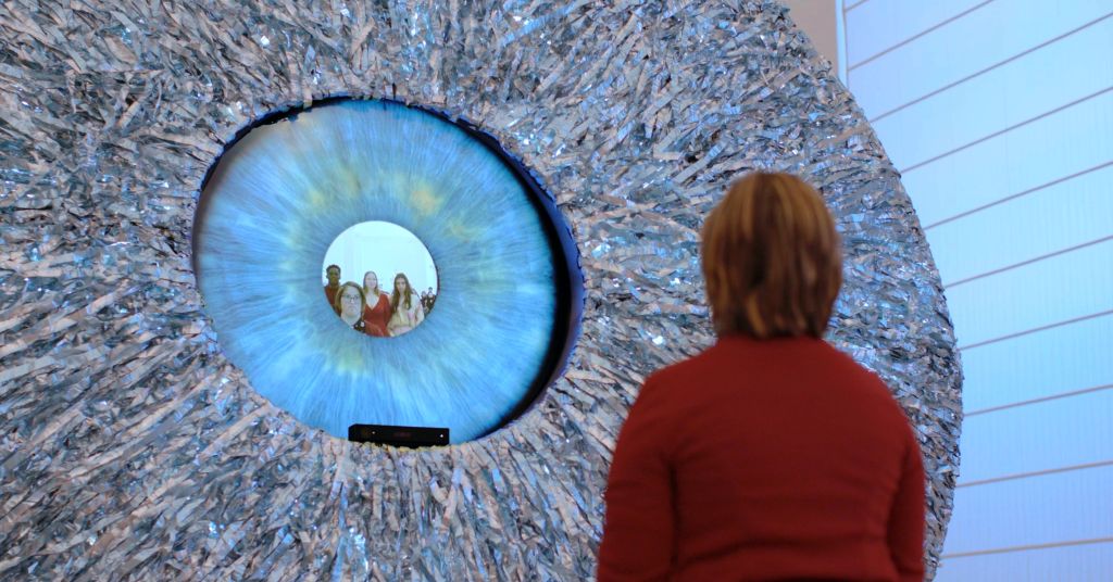 12 ottobre. Dall’alluminio riciclato, ecco una grande scultura che ripropone l’iride umano: dagli occhi di quest’opera multimediale è proiettato un video, che racconta come l’arte sia viatico di riscatto sociale. Sarà visibile nella sezione affreschi del Museo Archeologico Nazionale di Napoli, dal 12 ottobre 2022 (inaugurazione ore 17) al 9 gennaio 2023, l’installazione multimediale e interattiva “Colloculi>We Are Art” di Annalaura Di Luggo: il lavoro, che prende nome dalla fusione di due parole (collŏquĭum- dialogo e ŏcŭlus- occhio), si “attiva” grazie all’interazione con il visitatore che, fermandosi dinanzi all’opera, permette alla pupilla sintetica di far partire il video. Il messaggio riservato al pubblico è “tratto” da storie vere: Noemi, Youssouf, Larissa e Pino sono i ragazzi che hanno offerto il loro volto per testimoniare quanto la rinascita personale (e sociale) inizi spesso da un passato non facile. Anche i protagonisti del video diventano, così, immagini surreali: di Luggo gioca sul tema dell’occhio e dello sguardo, entrambi “deformati” per giungere a una finale visione d’insieme. Visione possibile solo grazie all’arte: per la realizzazione dell’opera multimediale, infatti, l’artista ha effettuato un vero e proprio viaggio di ricerca, alla scoperta di quelle vicende esistenziali che hanno trovato una svolta grazie a incontri positivi. Non casuale la presentazione di “Colloculi>We Are Art” al MANN: da tempo, infatti, il Museo Archeologico Nazionale di Napoli lavora, in termini di accessibilità, sul tema della vista. Di recente è stata inaugurata, proprio nelle sale dell’Istituto, un’opera tattile dedicata a ipovedenti e non vedenti; il lavoro di Annalaura Di Luggo conferma la volontà di indagare, anche in prospettiva simbolica, sul valore sociale di un tema, affrontato in collaborazione con le istituzione preposte, dal Colosimo al Museo Tattile Omero.
