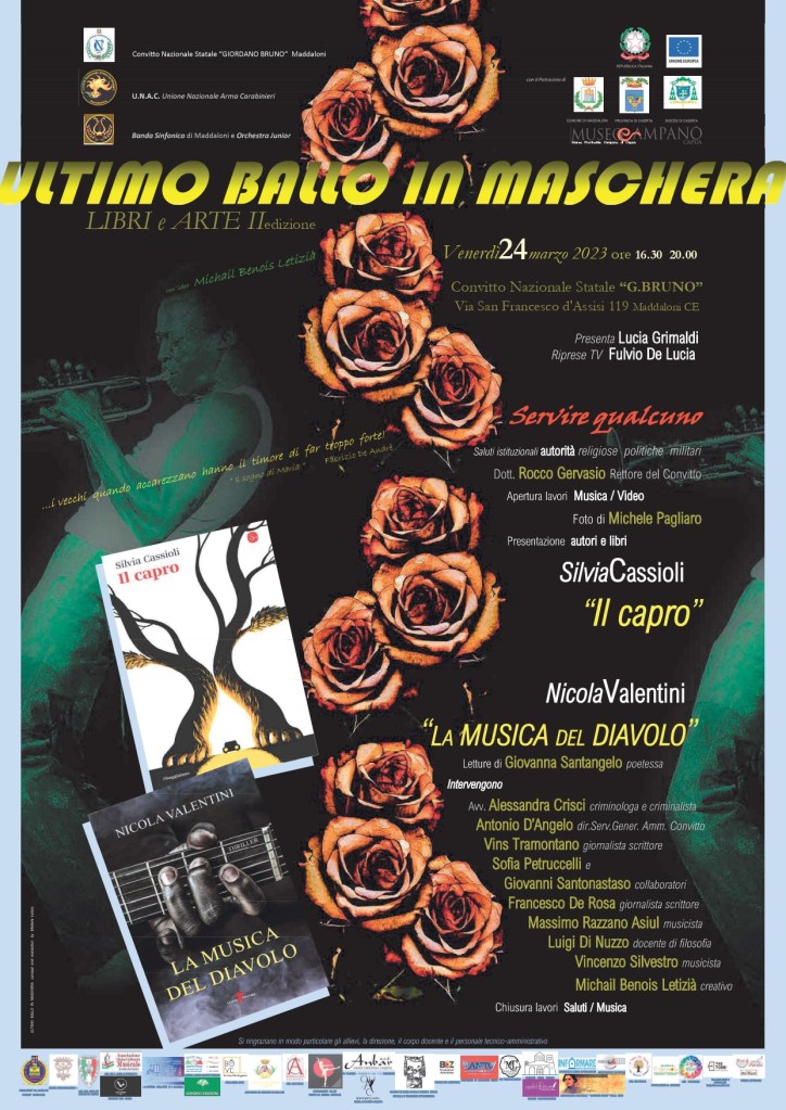 MADDALONI (Caserta) –Nuovo appuntamento di marzo 2023 con la rassegna “«Ultimo Ballo in Maschera» ritorno e presenza sul territorio”. L’evento si terrà venerdì 24 marzo 2023dalle ore 16.30,con la presentazione di Lucia Grimaldi e le riprese Tv di Fulvio De Lucia (disponibili sul canale Youtube “Comunicando” al link https://www.youtube.com /channel/ UCX8Yn68f3CmHNct7M4TughA).