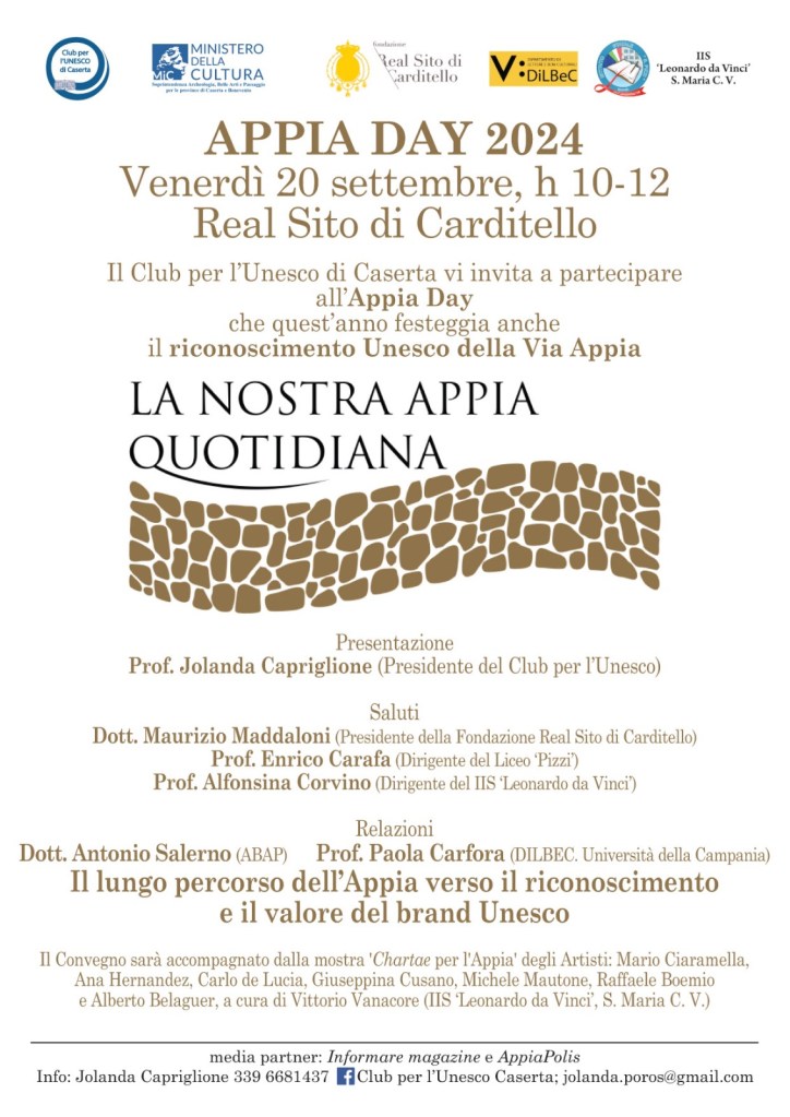 L’evento, patrocinato dal Ministero della Cultura, dal Real Sito di Carditello, dal DiLBEC dell’Università Vanvitelli di Caserta, dagli istituti medi superiori “IIS Leonardo da Vinci” di S. Maria Capua Vetere e Liceo Artistico “Salvatore Pizzi” di Capua e dal Club per l’Unesco di Caserta.