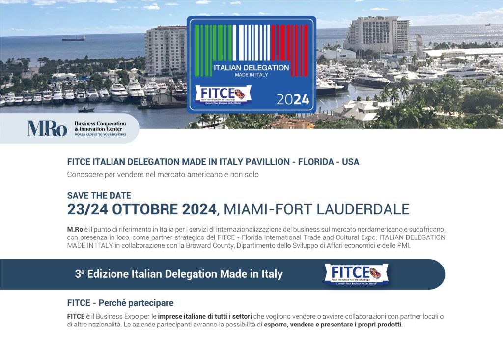 Il Padiglione “Italian Delegation Made in Italy” al Florida International Trade and Cultural Expo, per la promozione del Made in Italy, con un focus specifico sulle eccellenze della Regione Lazio. Ritorna nel mese di ottobre l’importante Business Expo governativo americano – Florida International Trade and Cultural Expo – che rappresenta un’importante vetrina internazionale per il Made in Italy.