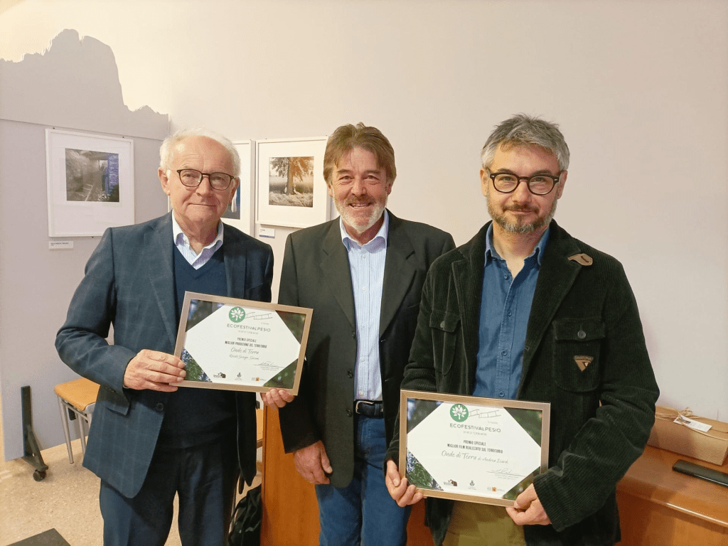 | Sotto: il produttore Renato Sevega e il regista Andrea Icardi, con i premi dell’Eco Fest Val Pesio |