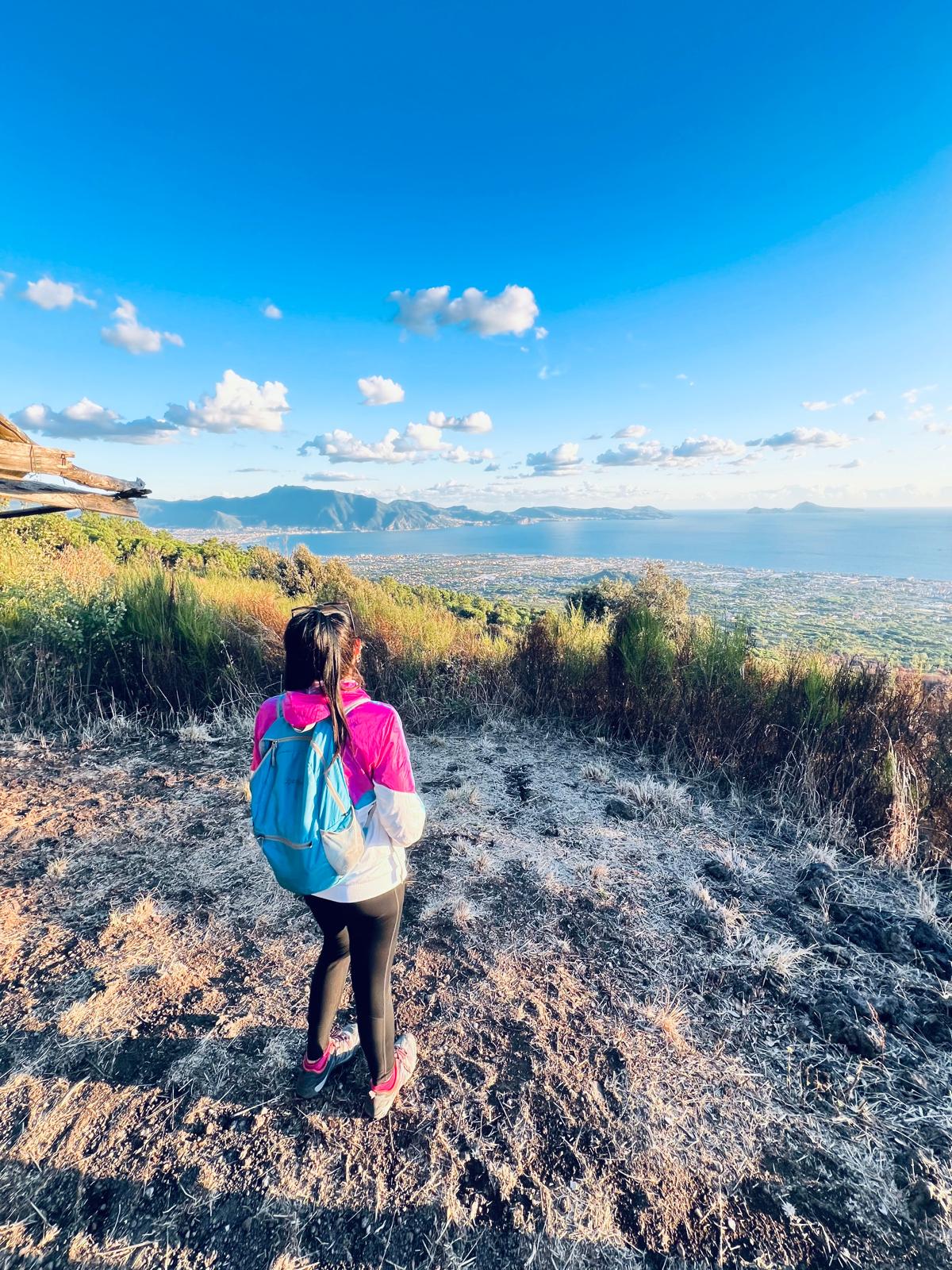 La meta finale dell’escursione è uno spettacolare piazzale panoramico affacciato sul Golfo di Napoli, da cui si gode una vista straordinaria fino alla Isola di Capri.