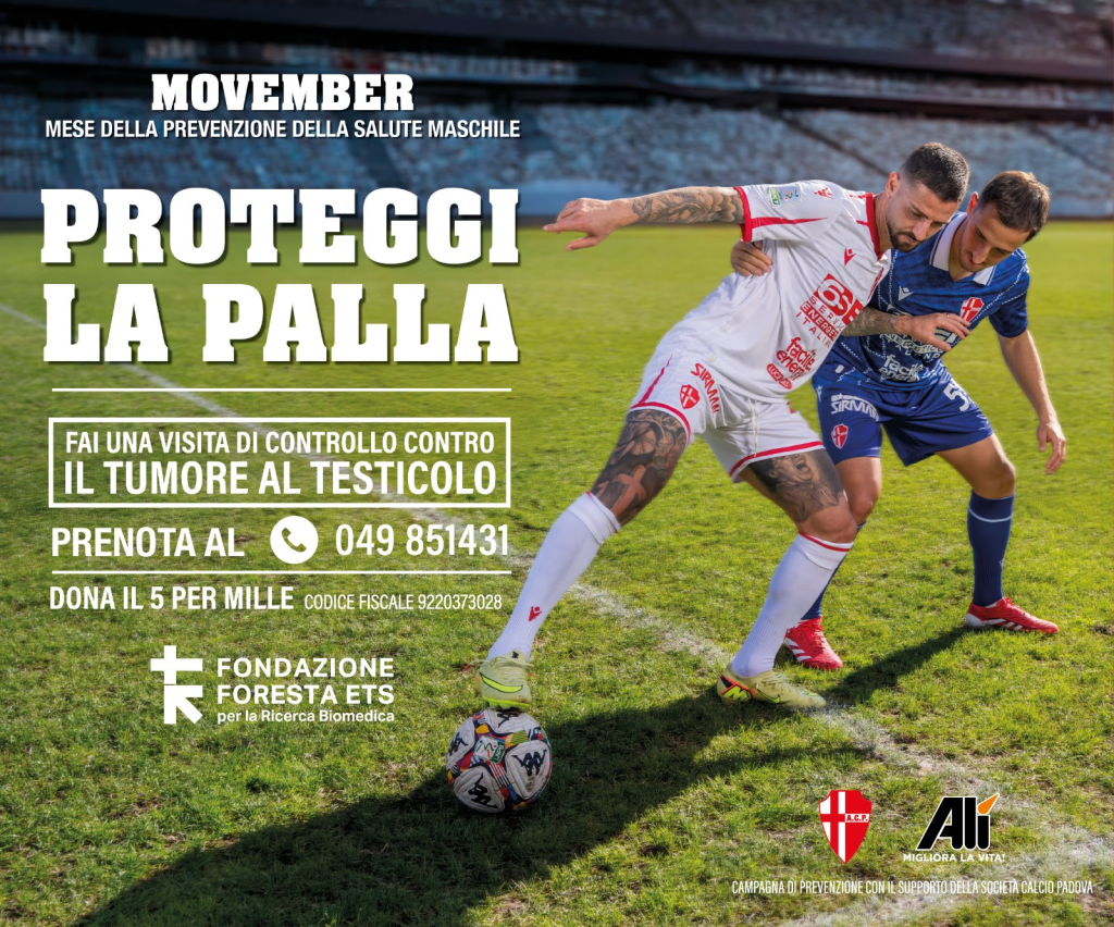 “Per noi del Calcio Padova questa campagna è molto più di una semplice iniziativa di comunicazione — sottolinea il Presidente della società biancoscudata Francesco Peghin —. Parlare di prevenzione maschile significa rompere un tabù che per troppo tempo ha tenuto gli uomini lontani dai controlli. Sul campo siamo abituati a proteggere la palla, ma nella vita dobbiamo imparare a proteggere anche la nostra salute. È un messaggio che vogliamo condividere con i nostri tifosi, soprattutto con i più giovani, perché la diagnosi precoce può fare la differenza. A volte basta una visita per salvare una vita. Siamo orgogliosi di affiancare la Fondazione Foresta in questo progetto che unisce sport, scienza e responsabilità sociale: come nello sport, anche nella prevenzione contano la costanza, la squadra e la voglia di non arrendersi. Novembre è il mese giusto per ricordarlo, e il calcio può diventare un canale potente per diffondere consapevolezza, con semplicità e senza imbarazzo. La salute è il nostro bene più importante, e non c’è vittoria più grande di quella che si gioca per se stessi”.
