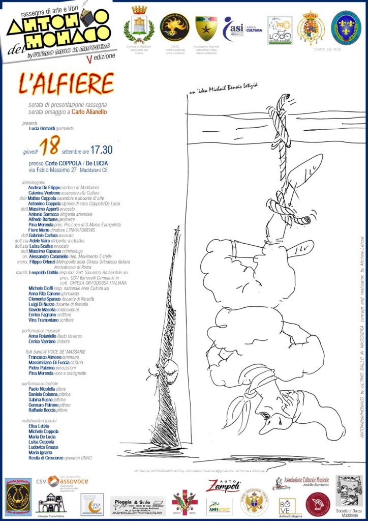 La locandina della serata “L’Alfiere” di giovedì 18 settembre presenta un uomo appeso.